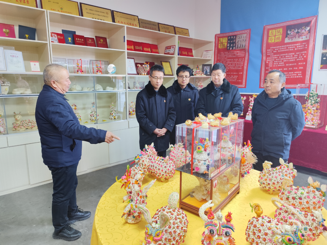 为加强文化遗产保护利用,弘扬中华优秀传统文化,近日,澄城县人民检察院党组副书记、副检察长杨锋民、检委会专职委员戴江一行,前往澄城县红云花馍农民专业合作社,参观非物质文化遗产技艺展示,了解非物质文化遗产保护利用传承过程中存在的问题。澄城县文化和旅游局一级主任科员王学斌,县文化馆馆长、非物质文化遗产保护中心主任权俊川一同参加。