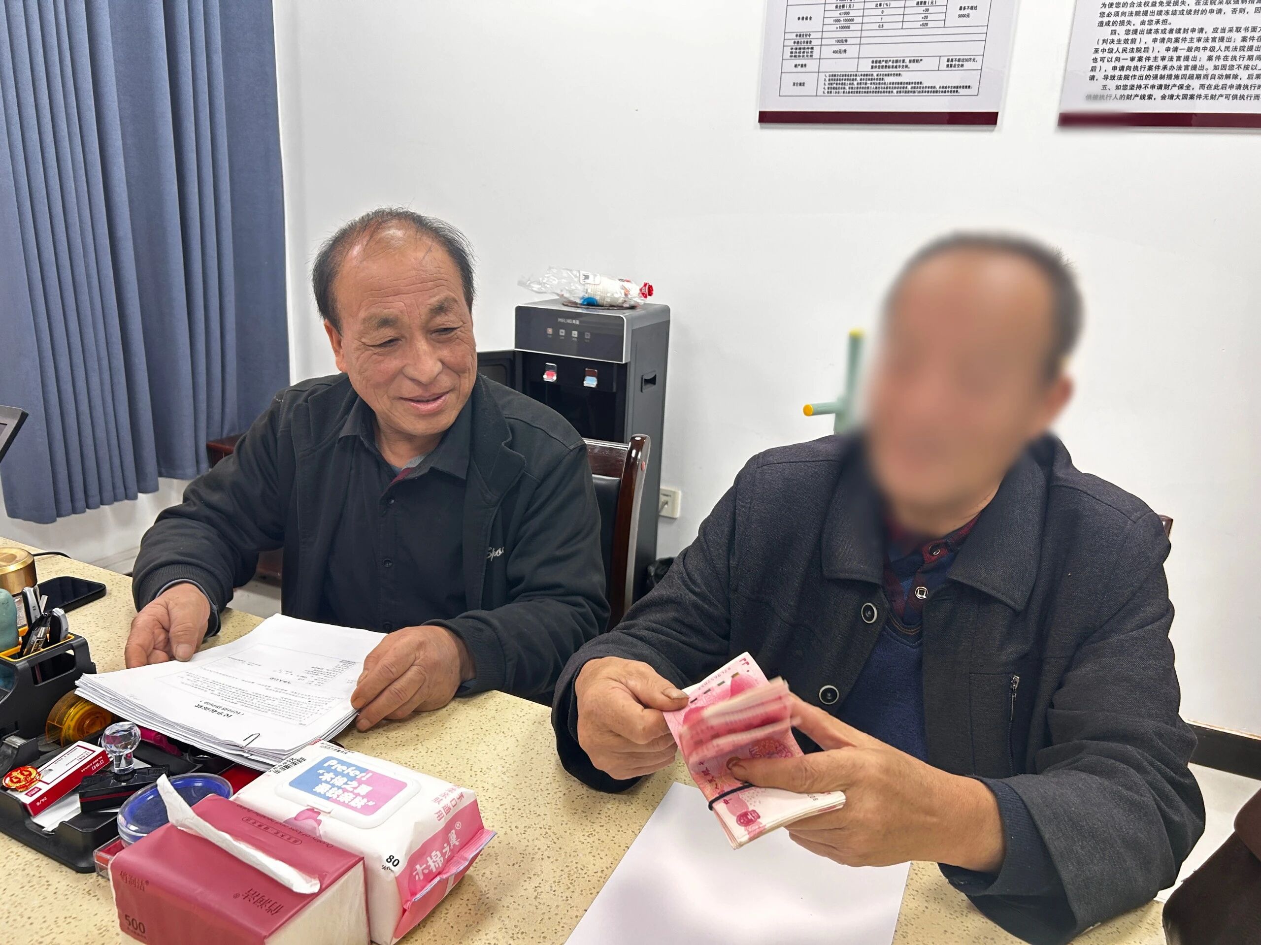 调解成功不是终点,兑现承诺才是关键。案件成功调解后,调解员并未因“案结”而懈怠,而是在每一期还款到期时通过电话提醒、微信督促等方式跟进履行情况,直到2025年10月,在法庭工作人员的见证下,被告李某给付了最后一期化肥款,原告雷某清点款项时露出了开心的笑容。至此,该案实现了真正的“事了”。