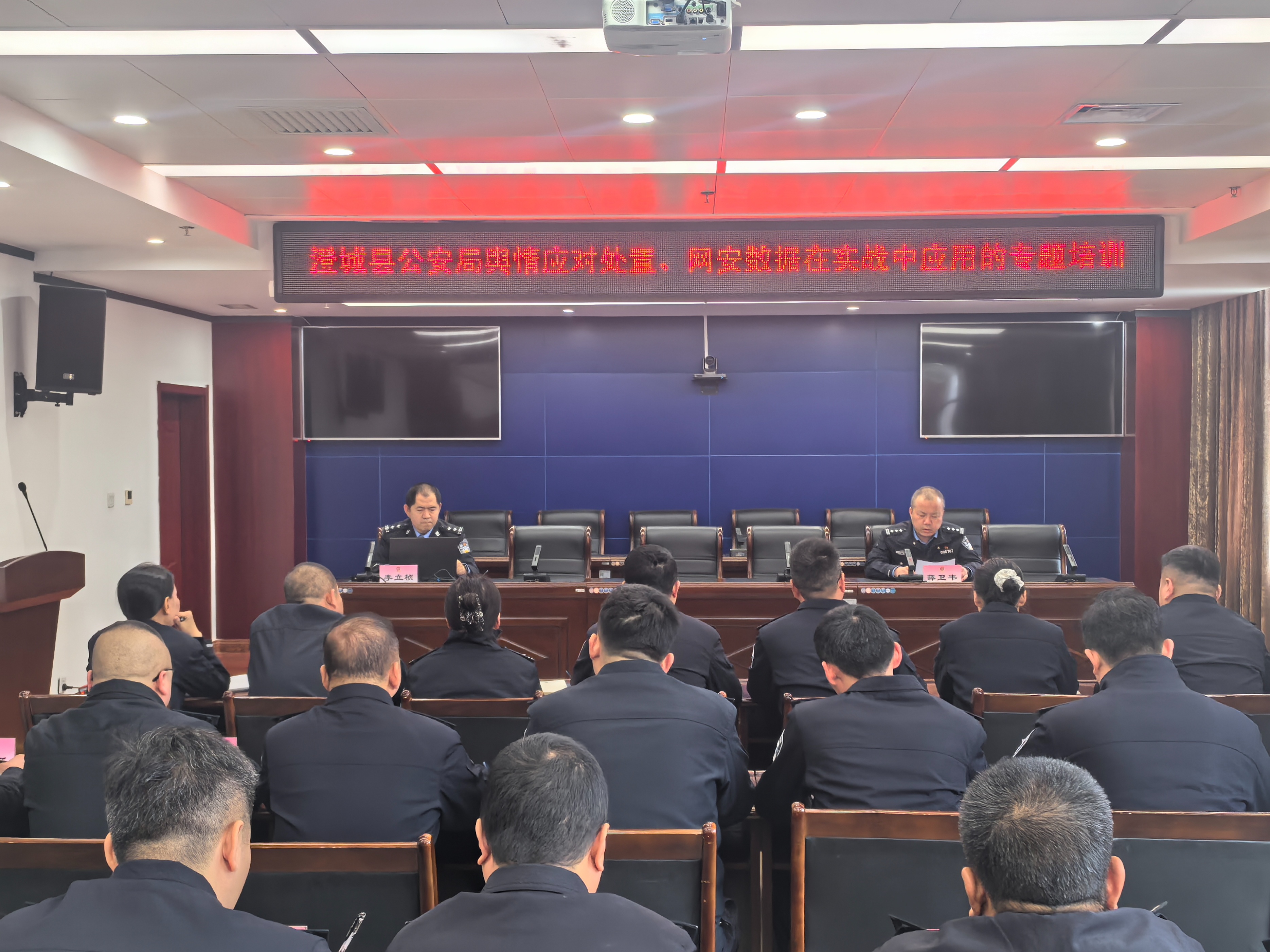 为持续强化全局执法办案专业化水平,破解舆情应对与网安数据应用难题,11月13日,澄城县公安局特邀兄弟单位——富平县公安局网安大队大队长李立桢,开展“舆情应对处置、网安数据在实战中的应用”专题授课。县公安局党委委员、政治处主任薛卫韦主持,全局各警种、派出所民警50余人参加培训。