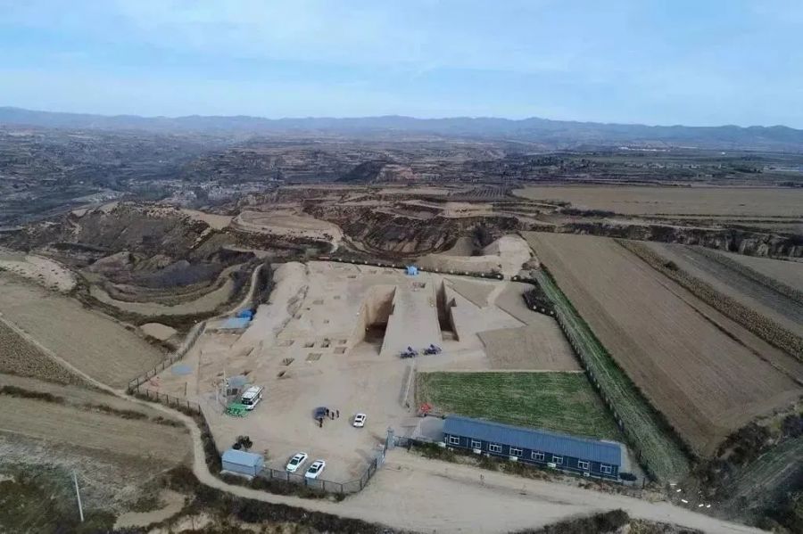 澄城刘家洼墓地发掘现场两座中字形大墓M1、M2。(图片来源网络)